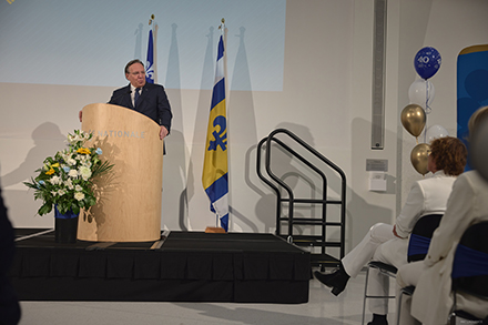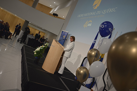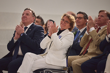 Le premier ministre, François Legault, la présidente du Conseil de l’Ordre, Claudine Roy, C.Q., et les invités.