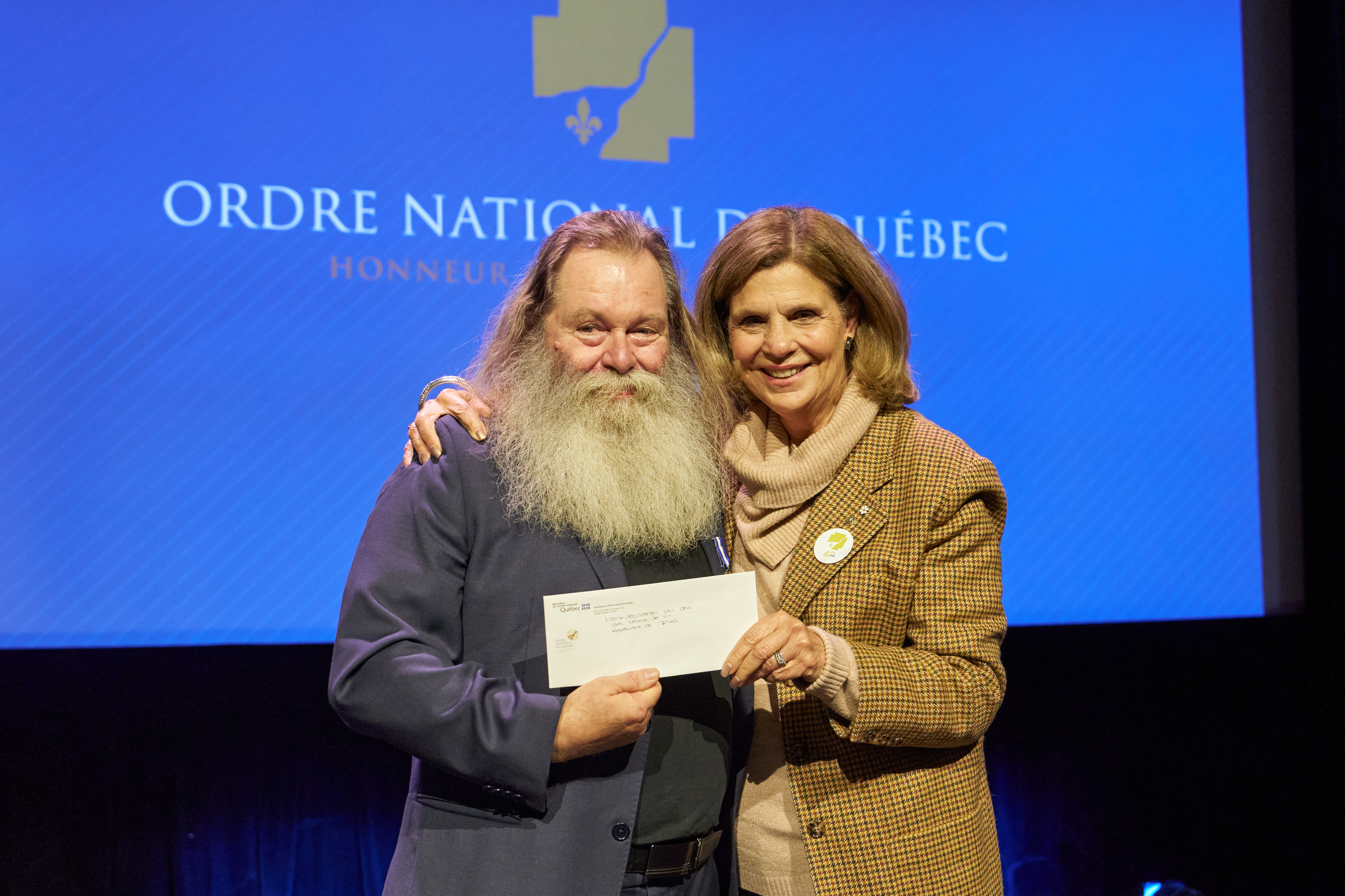 Suzanne Lareau, C.Q., est l’heureuse propriétaire de la giclée Mimosa gris de Jean-Claude Poitras, O.Q., offerte par l’officier. En l’absence de ce dernier, Joël Couture, du Secrétariat de l’Ordre, a remis le prix à Mme Lareau.
