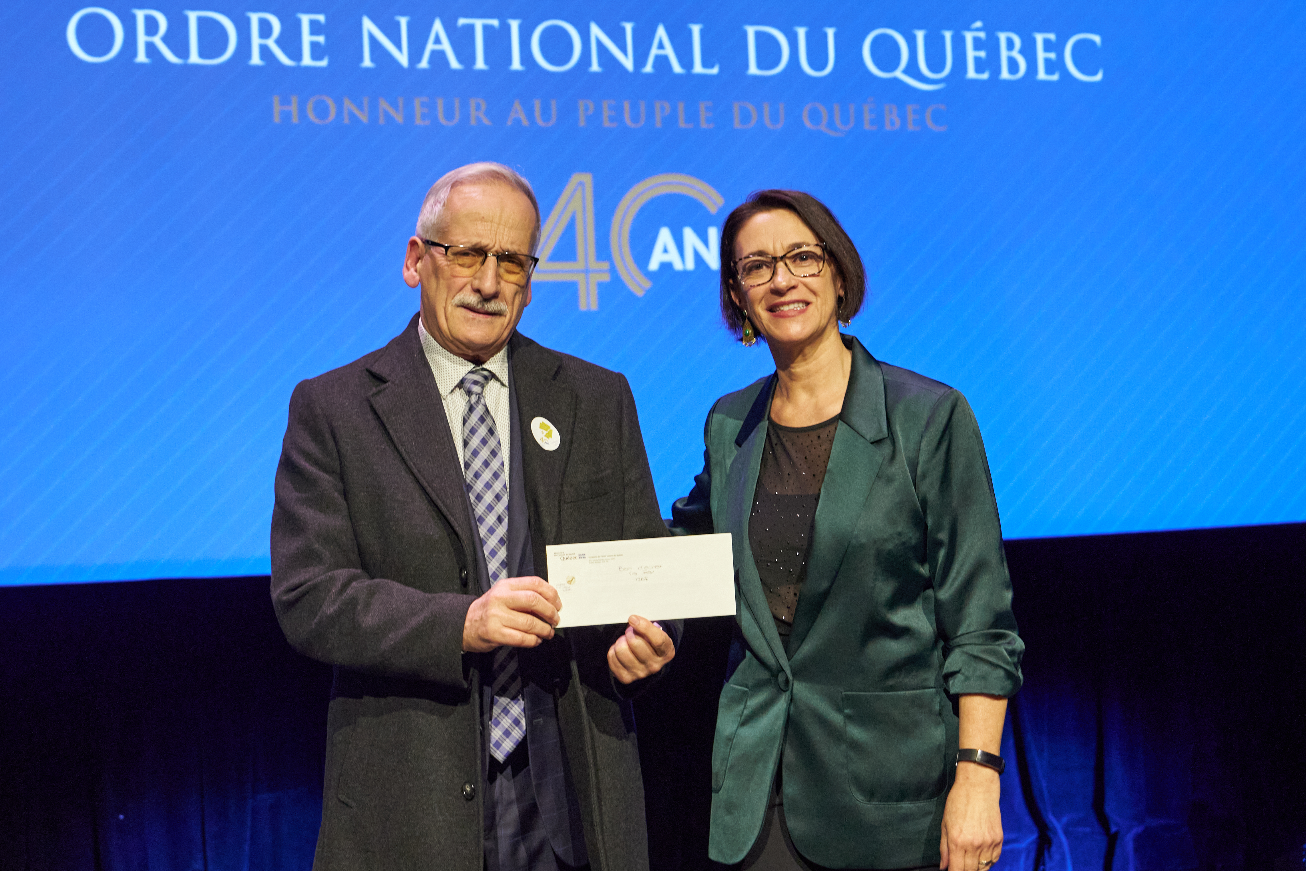 Claude Robinson, O.Q., est reparti avec un chèque-cadeau échangeable contre un souper pour deux personnes à l’Institut de tourisme et d’hôtellerie du Québec, gracieuseté de l’ITHQ, offert et remis par Liza Frulla, O.Q.